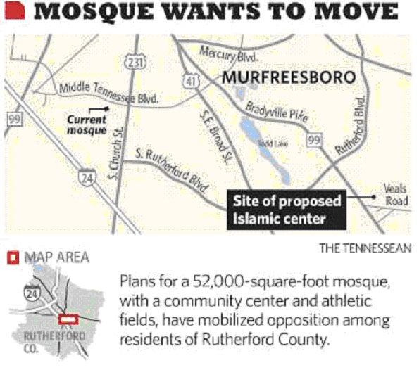 For the second time in two months, in Murfreesboro, a mosque is facing opposition from local residents who don’t want the monster-sized mosque constructed in their small, farming community.