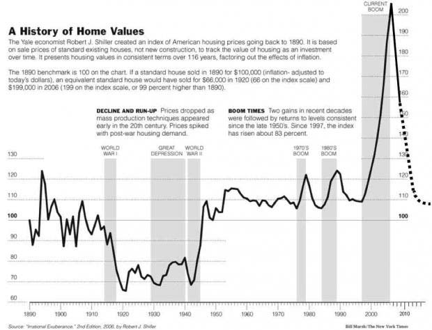 Home prices have not kept pace with median family income for most people. We saw an unrealistic acceleration that was boosted by the government and home loan companies. From the Business Insider comes this graph created by economist Robert Shiller that supports my contention that the housing bubble will not be inflating any time soon.