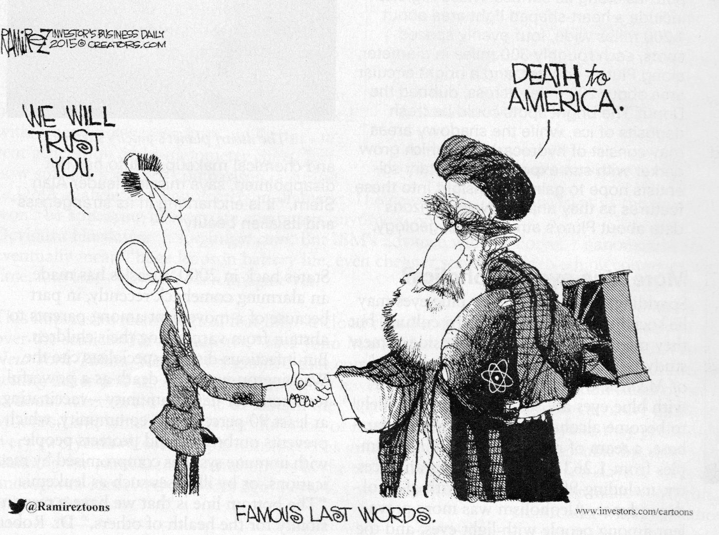 So there are some things that cannot be negotiated. “Death to America” is still be heard in the streets of Tehran. The leadership of Iran are the sponsors of that cry. There is not a shred of evidence to prove the agreement will be honored. The Barack Obama legacy will be he left office with war on the horizon. I really hope and pray I am wrong!