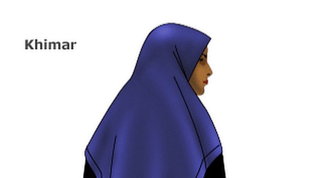 The Khimar is a long, cape-like veil that hangs down to just above the waist. It covers the hair, neck and shoulders completely, but leaves the face clear.