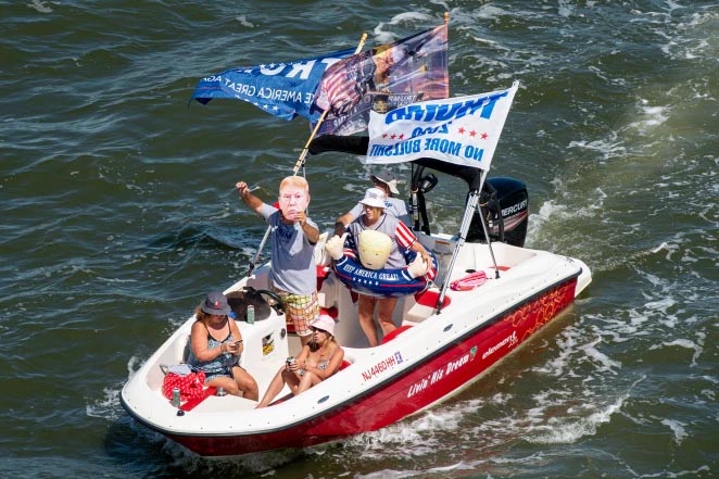 3. The ‘Enthusiasm Factor’ could lead to another Trump win because there is a lack of it for Biden. How many of those people who said in the polls they support Joe Biden will actually cast their vote for him? A platoon of Trump fans floated in New Jersey’s Barnegat Bay on Sept. 15. They had their Trump support banners on their boats.
