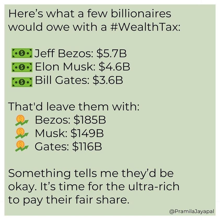 An annual wealth tax for all billionaires will not impact their lives or the lives of their future generations. Jeff Bezos, who is already the richest person in the world, has seen an increase in his net worth from $74 billion to $189.3 billion during 2020.