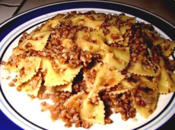Kasha Varnishkes  One of the little-known “delicacies” that is even more difficult to pronounce than it is to cook. It has nothing to do with varnish, but is basically a mixture of buckwheat and bowtie noodles (not macaroni). Why bowties? Many sages in the Old Testament discussed this and agreed that an ancient Jewish mother must have decided, ‘Son, you can’t come to the table without a tie or, god forbid, place your elbow on the table.” If Mamma said ‘bowties,’ you better believe that’s what the family used, even if they had to invent them on the spot.