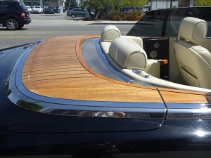 Check out the luxurious teak wood decking on the Rolls-Royce Phantom Drophead Coupe Convertible. “The optional teak decking was inspired by classic racing yachts – hand-made from 30 separate pieces and cut from the same tree for consistent grain,” explained on the hogring.com web site. The teak wood decking is optional and comes at a hefty price of $9,875. Anyone willing to spend nearly $500,000 on the base model would not baulk at paying an extra $10K for such a gorgeous feature.