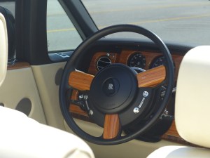 I was taking Freddy, my terrier, into the groomer for a trim and bath. After I parallel parked I realized that there was a Rolls-Royce in front of me. When you go to the car show they have these cars on display but you really can’t see the interior easily. This car could be seen by everyone walking or driving by. No one was around and I ran my hand over the wood not certain that it was really wood. No license plate on the back told me it was very new. The owner was definitely showing off.