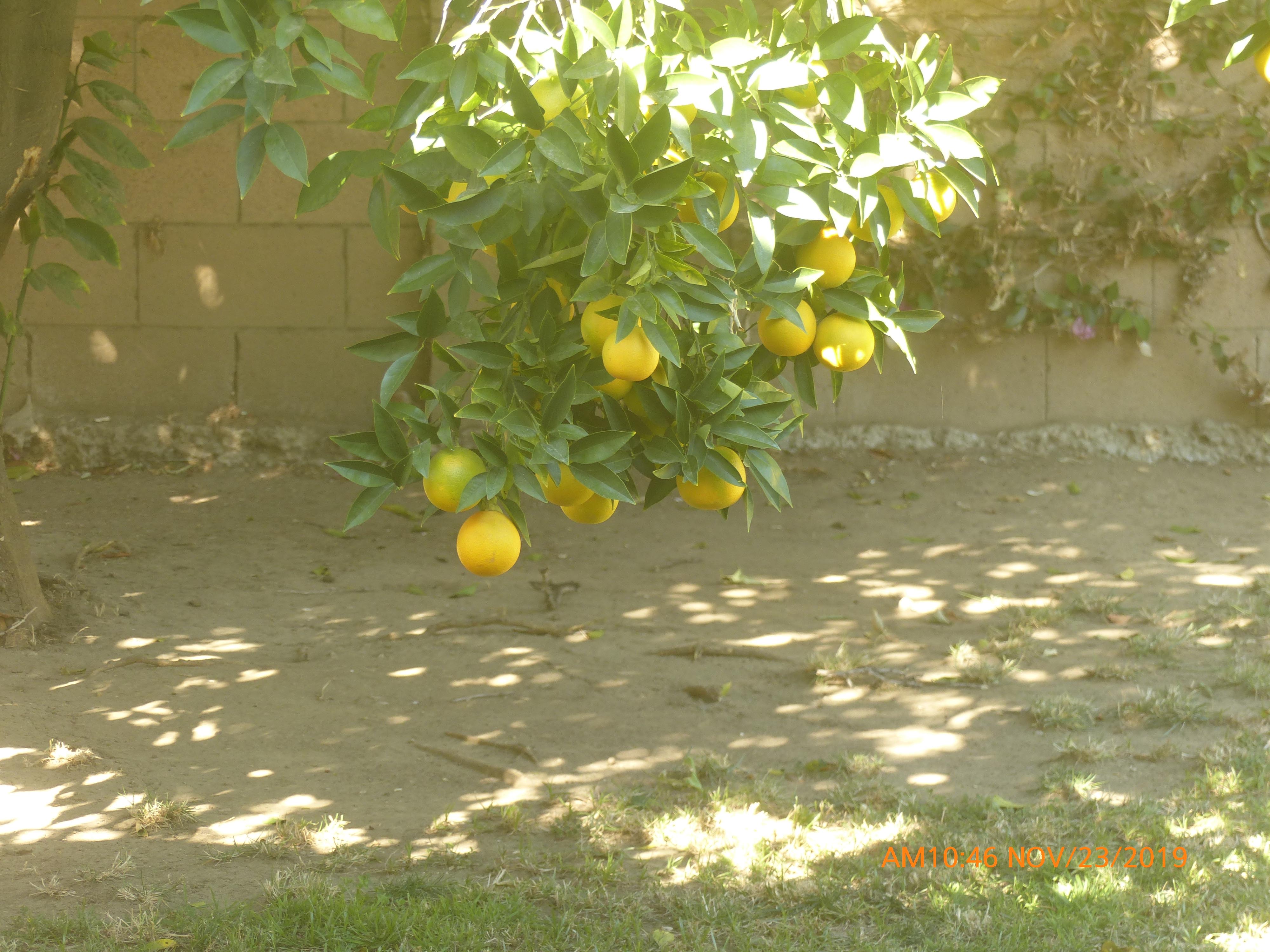 The tree is probably 60 years old. It was not looking well. The nursery suggested a fertilizer mix to spread every three months. The crop was big last year and this year the branches are almost touching the ground thanks to the heavy load of fruit. The tree is easily 30 feet tall and I can see the fruit near the top. They will be bright orange around January 1. The squirrels are going to have a wonderful time.