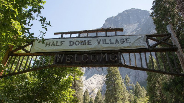 The tarp renaming Curry Village Half Dome Village came down on Monday