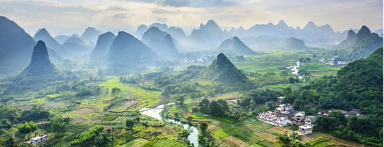 Yangshuo County boasts a generous helping of the spiky karst hills and meandering rivers that southern China’s Guangxi region is renowned for. There are large cities and towns in Yangshuo, but also many small, extremely picturesque villages nestled along waterways and tucked below craggy peaks. We’re gazing down here on the village of Cuiping, not far from Yangshuo Town and a magnet for visitors equipped with lots of extra smartphone photo storage. They’re going to need it for all the images they’ll take of this fantastical landscape. And while views from a river raft will doubtless be charming, the real wows come from trekking up the hillsides and getting a birds-eye view of the scene.