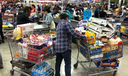 We’ve been to three super markets and Costco in the past seven days. People are in panic mode as they buy bulk quantities of water, paper goods, fruits and vegetables, meat and many other items as if there are or will be shortages. The lines are long as their shopping carts are filled to the brim.