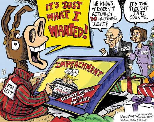This impeachment is a fact but now comes the politics of a trial in the senate. The Democrats will be doing every trick they can to have Trump removed from office. At the very least the impeachment will hang over Donald Trump forever.
