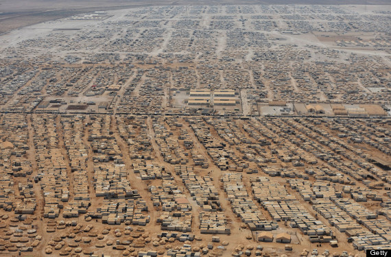 An aerial view shows the Zaatari refugee camp on July 18, 2013 near the Jordanian city of Mafraq, some 8 kilometers from the Jordanian-Syrian border. (MANDEL NGAN/AFP/Getty Images)