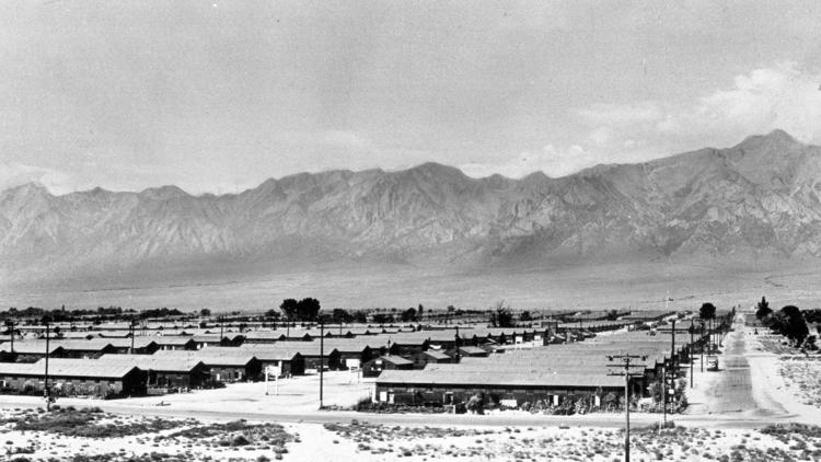 Barracks at Manzanar, where about 10,000 Japanese Americans were interned, as seen in 1942.(Los Angeles Times)